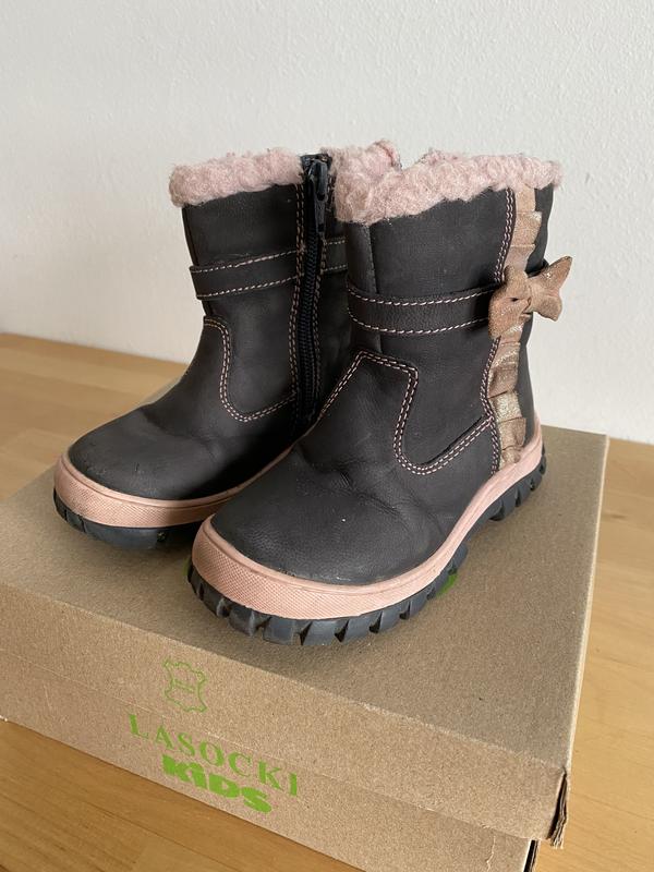 Чоботи для дівчинки. Фірма: Lasocki kids. Колір: темно-синій. Розмір: 24, довжина устілки 15 см. На вік 3-4 роки. Матеріал: натуральна шкіра. Усередині штучне хутро. П'ятка - лиса та тверда. Чоботи закриваються на блискавку. Стан: б/у, добрий стан. Ми відносили їх 2 сезони, є невеликі зчоси спереду. За запитом можу скинути фото, відео, як виглядають на ніжці дитини.