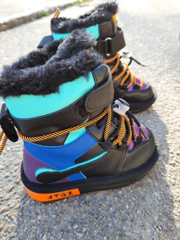 Яркие зимние угги. Очень легкие и тёплые. Внутри густой мех. Хорошо регулируются резинками и липучкой. Подойдут мальчику и девочке. Размеры: 21 - 14 см 22 - 14.5 см 23 - 15 см 24 - 15.5 см