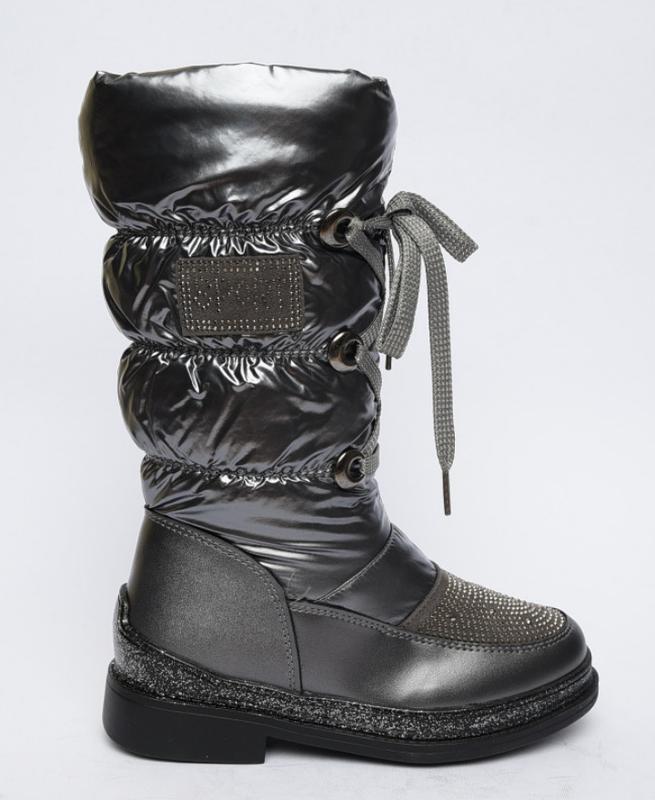 Сапоги зимние детские девочки темно-серые Размер детской обуви: 32; 33; 34; 35; 36; 37 Вид обуви: Сапоги Застежка: Молния Материал верха: Комбинированный Материал подкладки: Искусственная овчина Пол: Для девочек Прошивка: Нет Супинатор: Нет