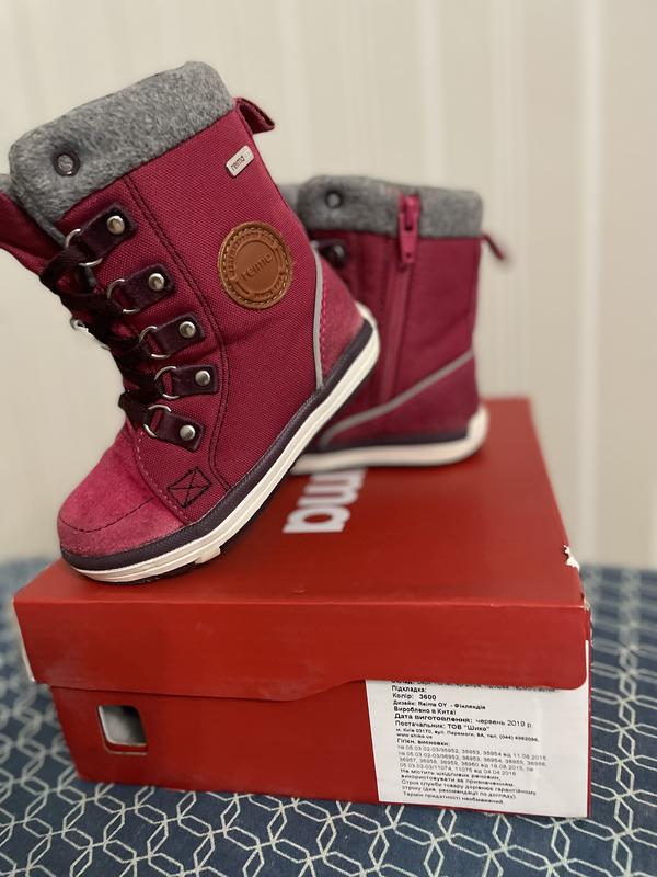 Зимние ботинки Reimatec, модель Freddo 569360, цвет 3600 малиновые. Популярная и всегда востребованная зимняя модель Freddo финского бренда Reimatec выполнена в сочном малиновом цвете и безусловно понравиться каждой моднице любого возраста. Ботинки водонеппроницаемые и очень теплые, предусмотрены для каждодневной носки при любых условиях погоды и устойчивы к морозу до -10. Верх изготовлен из натуральной замши с хорошими грязеотталкивающими свойствами в сочетании с вставками из текстильного материала, на подкладке из искусственного меха. Толстая резиновая подошва из термопластикового каучука не скользит и хорошо амортизирует на любой поверхности. Внутри удобные съемные стельки из теплого войлока с специальным рисунком Happy Fit, с помощью которого можно максимально правильно подобрать необходимый размер обуви. Ботиночки легкие и удобные, быстро обуваются с помощью застежки-молнии сбоку, а эластичная шнуровка спереди позволит отрегулировать нужный объем. Ботинки украшены светоотражающими деталями, что обеспечит безопасное передвижение в темное время суток. Состав: * подошва - термопластиковый каучук * верх - замш, текстиль * подкладка - искусственный мех Состояние идеальное