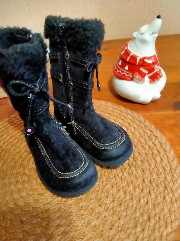 чудові утеплені чобітки для маленької дівчинки, єдиний нюанс на носках чуть стертий замш, видно на фото.