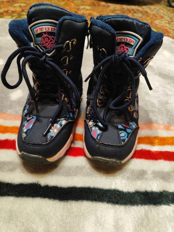 Чоботи для дівчинки. Є сліди носки але не дуже замітні. Не стоптані так як були основні які носили більше. Розмір устілки 17 см. Зручні.