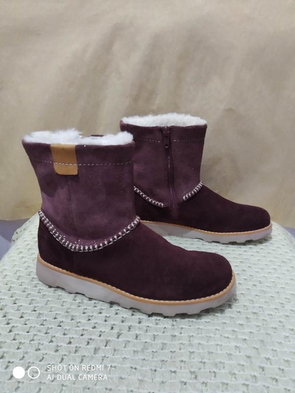 Кожаные ботинки сапожки Clarks в идеальном состоянии, верх обуви натуральная замша, в середине мех Длина стельки 21.6 см, ширина 7,4 см, высота сапожка от пола 16см Отсылаю накладным платыжем при предоплате 130грн, или безопасной оплатой только новой почтой
