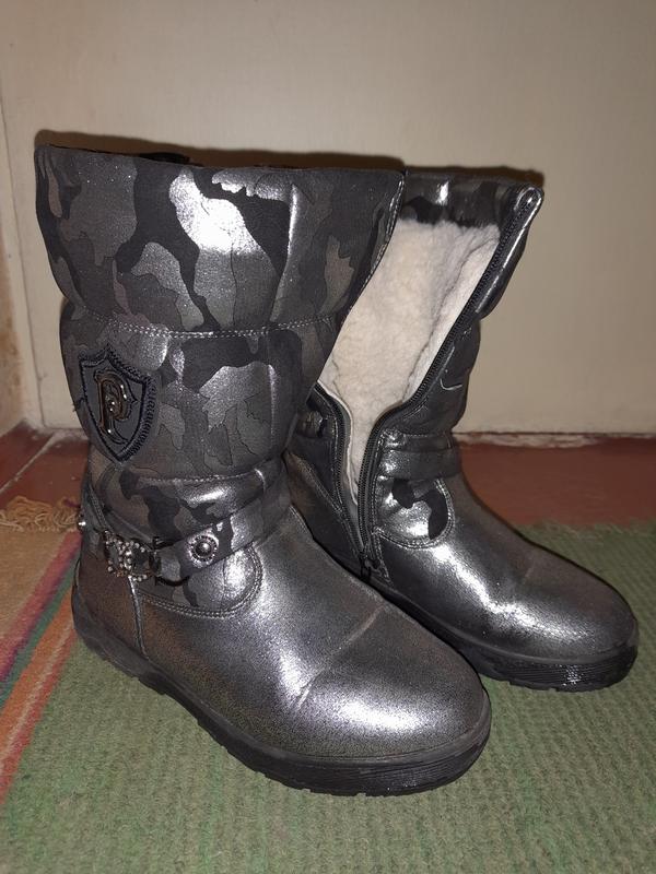 Чоботи зимові для дівчинки, 36 розмір. По устілці 22.5см, дуже теплі. Носили мало. В реальності виглядають краще, ніж вийшло на фото.