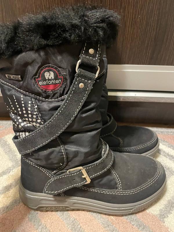 Предлагаю фирменные сапоги Elefanten р.32, стелька 20,5 см, общее состояние передано на фото. Выполнены из натуральной замши, внутри на меху. На мембране Elefanten-Tex. Внутри целыые.