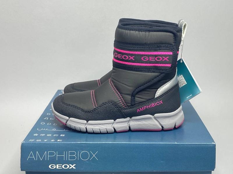Зимние сапожки – дутики, ботинки девочке Geox Flexyper 28,29 р Не промокают. Оригинал в родной коробке. На среднюю и худенькую ножку – размер в размер. На полную ножку выбирайте на размер больше. Материал верха: искусственные материалы + текстиль. Внутри: искусственная шерсть + технология Geox Amphibiox - это инновационная технология, которая надёжно защищает от влаги и позволяет ноге дышать. Не промокают Стелька: войлок Подошва: Термопластичная резина - легкая и прочная, с отличным сцеплением. Усиленный носок. Размеры в наличии и стелька- см. фото: 29 размер - 18,0 см до загиба, 18,7 см полная стелька Отправка по Украине день в день или на следующий день по 100% предоплате или наложенным платежом (200 грн предоплата). Доставка, обмен, возврат за счёт покупателя. Смотрите мои другие объявления, много детской обуви Ecco, Geox, Superfit по приятным ценам