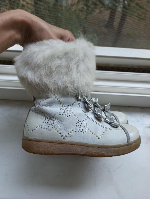 Итальянские сапожки для девочки. Оригинал. Камешки все на месте, только потеряли один верхний бантик ( на фото). В носке не видно, потому что закрыт мехом, вполне можно сделать самому. Очень удобные, хорошо выглядят. Мех натуральный - кролик.