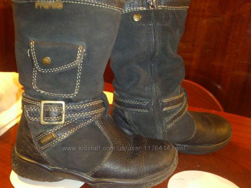 Сапожки в идеальном состоянии,все рабочее ,стелька 18.2 см.Черные,кожа натуральная и замша,гортекс,внутри тонкий слой утеплителя ( идут на раннюю весну-позднюю осень),стелька кожа. Не текут,без дефектов,подошва не стерта, носочки не сбиты (на фото без крема ,воска и прочей маскировки). Цена 200 грн