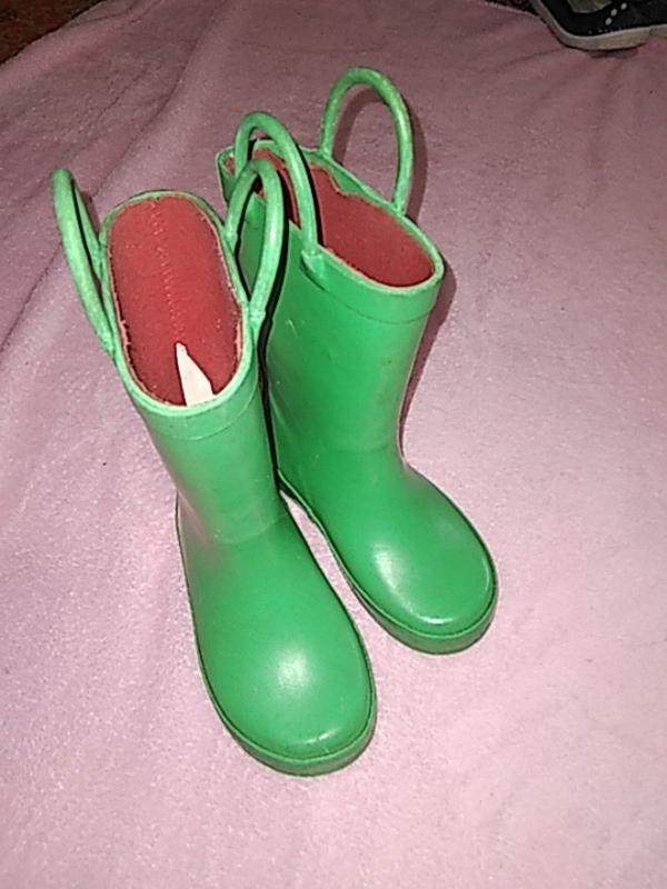 Сапоги резиновые не промокают зеленые, подойдут девички и мальчику по по потолке -14 см. носили летом,весной и теплой осенью. состояние удовлетворительно, цена символична.