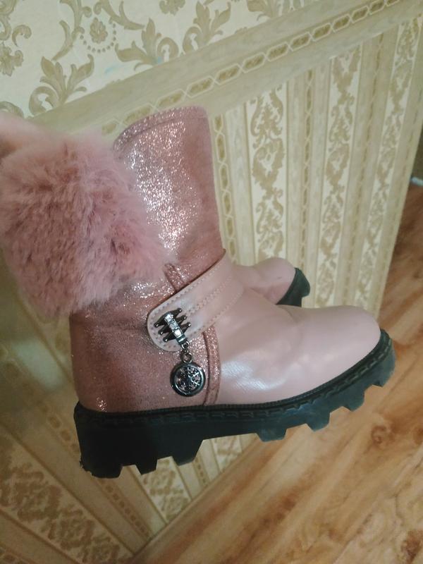 Очень красивые зимние сапожки на меху , пудро-розового цвета,теплые ,есть нюансы ,отпало украшение и немного протерты носки .Цвет как на первом фото Размер указан 28 стелька 17,5 см высота сапога 15,5 см