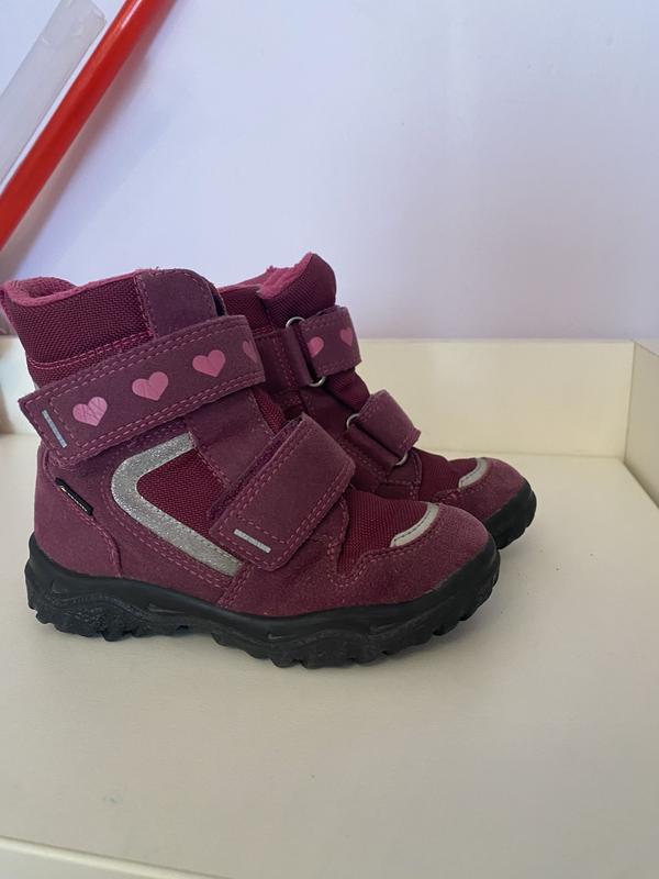 Снаружи как новые, сверху в середине есть дефект, он находится на фото) легкие, теплые и не промокают! Размер 25, на ножку 15 см, стелька 16.3 см