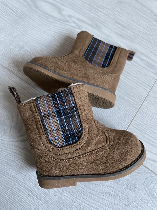 Осенние замшевые сапожки h&m, внутри легкий флис, состояние идеально, видно по подошве. Размер 18/19