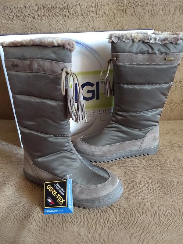 Теплые зимние сапоги на девушку подростка от итальянской марки - Примиджи. Выполнены из натуральной замши и текстиля. Водонепроницаемые. Внутри - мех. Дышащая и водонепроницаемая мембрана от Gore-Tex. Размер на обуви - 35 Длина стельки - 22 см.