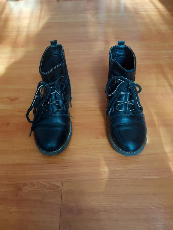 Очень крутые детские ботинки деми на шнуровке и молнии. Стильные ботинки на осень-весну, материал качественный кожзам. Состояние хорошее, относили один сезон. Немного маломерят, стелька неотъемлема, поэтому сложно точно измерить длину – 21,5-22 см. Размер 34-35. Пишите – отвечу на все вопросы, сделаю дополнительные фото, если нужно.