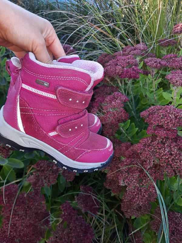 Зимові боти для дівчинки Reima 28p. Дуже теплі,міцні та легкі. Носки сбитi,видно на фото.А так цілі.Це можно довго носити.