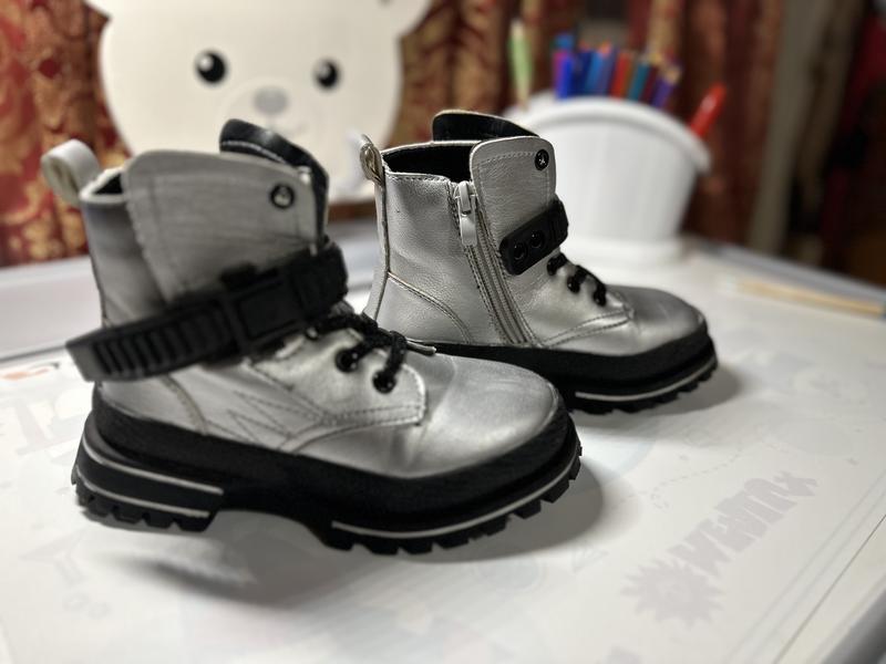 Демисезонные ботиночки в красивом состоянии. Взули один раз, замалі…. Размер 29. Искусственная кожа, внутри байка. Регулируется спереди пряжка. Бралы за 650 грн, отдам за 500. Очень крутые