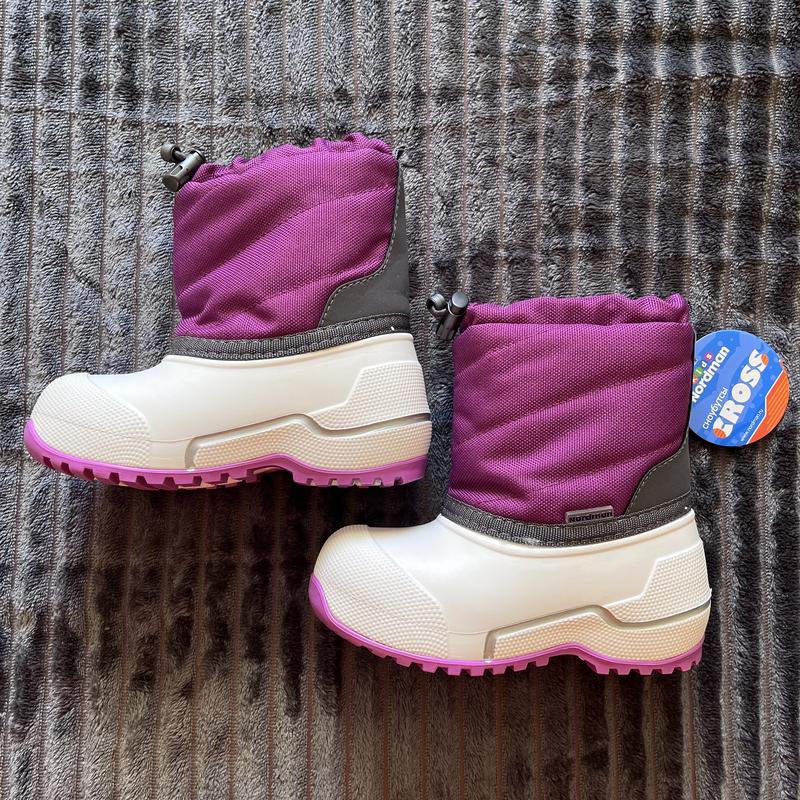 Нові сноубутси, ДУЖЕ теплі, легенькі(0,25кг пара🔥) дуже зручні!!! До війни 3 сезони купували тільки їх! І на суху зиму і на вологу- ідеально! Температурний режим +5 до -15! Дуже зручно одягати/знімати 👍 Залишитесь мега задоволеними❤️ Детские сноубутсы Nordman Cross из ЭВА с уникальной антискользящей подошвой. О таких мечтает каждая мама – в них сухо, тепло. Они суперлегкие и не скользят. Сноубутсы Cross можно носить и в слякоть, и в мороз до -15°С В слякоть, потому что галошка сделана из водонепроницаемого ЭВА, а прочная ткань – с влагоотталкивающей пропиткой. Вставка на подошве из термопластика уменьшает риск скольжения в сноубутсах в 3-5 раз по сравнению с аналогичными сноубутсами. В мороз, потому что внутри шерстяной мех. Стелька – съемная – для удобства просушки. Под стелькой – тоже шерсть, поэтому стопа ребенка под двойной защитой от холода. Да и сам материал ЭВА отлично сохраняет тепло.