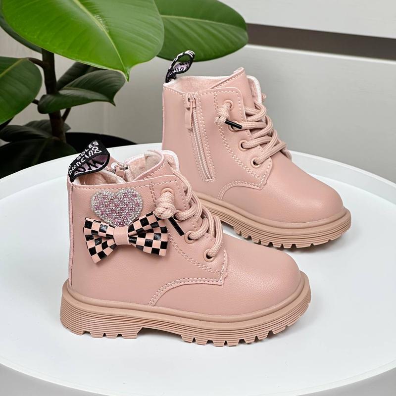 ❄️Ботиночки бантик розовые, зима. Утепленные овчиной. Верх - эко кожа. Застежка - замочек сбоку и шнуровка. Подошва - ПВХ. Стелька - овчина. 📐Замеры: 21 - 13 22 - 13,5 23 - 14 24 - 14,5 25 - 15 26 - 15,5 💰Цена 755 грн