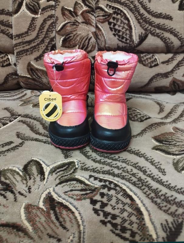 Зимние крутежные дутики Clibee для девочек Верх качественная эко-кожа+плащевка. Внутри густая овчина 60% натуральная. Сбоку назамочку. Очень легкие и теплые. Подошва антискользящая. Температурный режим до - 30°Размер 24 - 16,0 см. Причина продажи не угадали с размером.