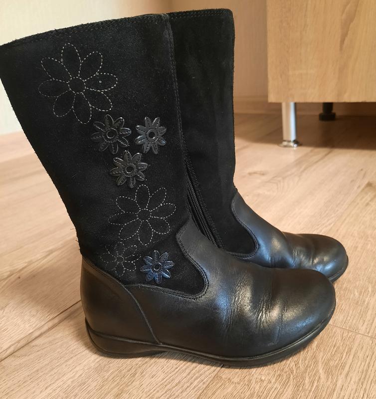 сапожки дымесезонные кожа + замш, 28 р., длина стельки 17 см, сбоку есть замочки