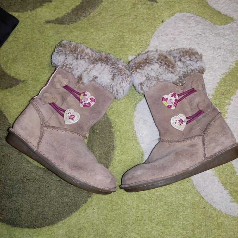 Бежевые Clarks размер 9 наш примерно 26-27 .длина стельки 16 см.натуралтная замша,внутри искуственный мех.нахолодную осень,теплую зиму.сосиояние хорошее.