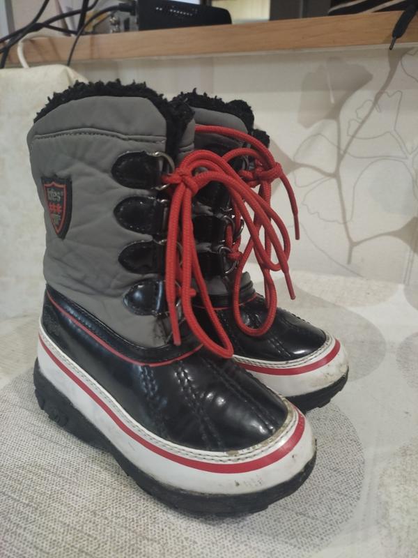 по стельці десь 17 см,легенькі,зимові,прошиті ,не промокають,на замку,і шнуровці,