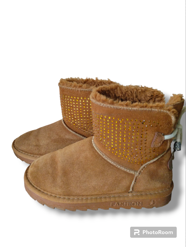 Чудові уггі для дівчинки. Зручні, теплі, комфортні! Носили з задоволенням,але мало бо ніжка швидко росте! Довжина устілки 22 см. Вверх штучний замш, але чудової якості і дуже схожий на натуральний. Стан дуже гарний! В наявності є взуття та одяг для всієї родини!)