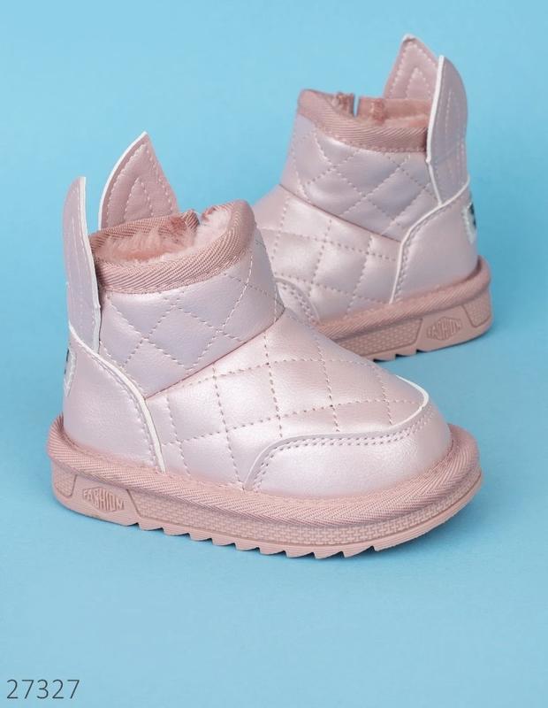 Угги для девочек Бренд: BBT.Kids Страна производитель - Китай Цвет - розовый Материал верха - экокожа Утеплитель - искусственный мех Застежка-молния Стелька - пена искусственный мех, без супинатора Подошва - ПВХ Размерный ряд: 21-26 размер Замеры: 21 размер по стельке 12,5 / по подошве 15 см 22 размер по стельке 13 / по подошве 15,5 см 23 размер по стельке 13,5 / по подошве 16 см 24 размер по стельке 14 / по подошве 16,5 см 25 размер по стельке 14,5 / по подошве 17 см 26 размер по стельке 15,5 / по подошве 18 см