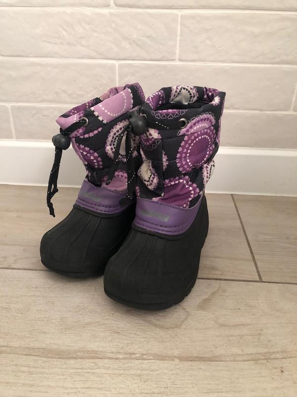 Зимние сапоги Reima Верх текстильный, низ обрезиненный, внутри флис Темп. режим +5/-20 Сзади потрескался кожзам (последнее фото) Стелька 17,5-17,7 см (на стопу 16,5-17 см)
