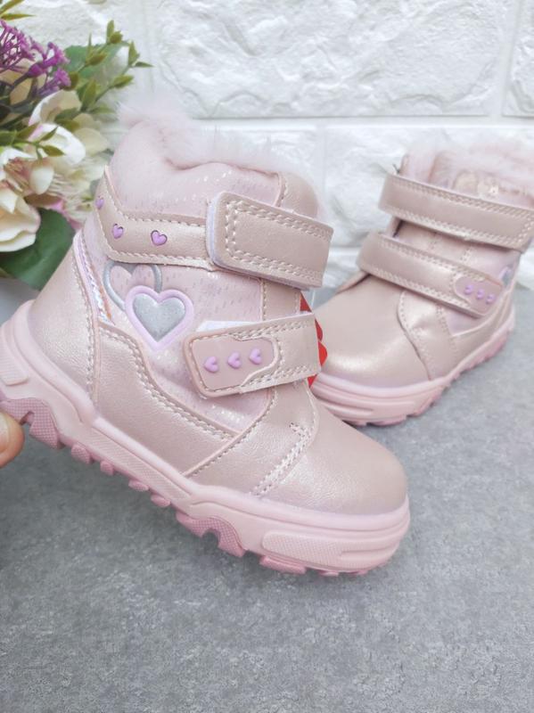 К.1321 👧Черевички Apawwa рожеві, верх еко-шкіра, в середині штучне хутро,регулюються замочком та 2 ліпучками, підійдуть на високий підйом. 23р устілка 14,5см