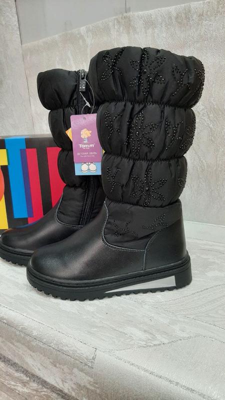 Термочобітки Tom.M на дівчину р-р 31(20см).Верх-шкіра.Всередині утеплені натуральним хутром густе та плотне.Фіксуються змійкою,яка захищена від потрапляння вологи.Легкі та комфортні.Відмінна якість.