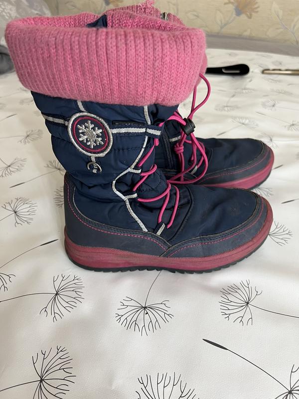 Детские термоботинки на девочку 33р ,Внутри утеплитель термо мембрана ,при минус -20 в Карпатах ребенок бегал и был очень доволен.Они удобные и им не страшен холод и высокие снег.На 2х последних фото показаны следы эксплуатации.