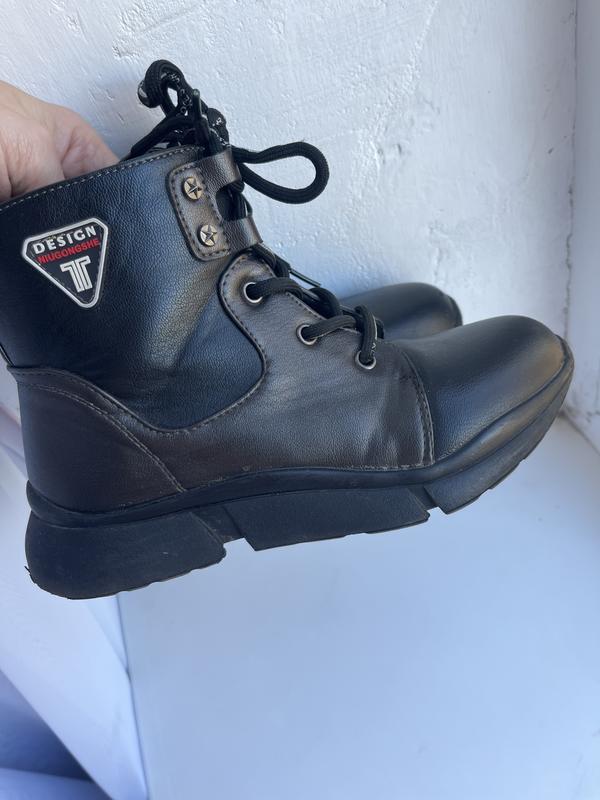 Демисезонные сапоги на девочку, кожу зам, размер 34, есть небольшая царапина на носке, но визуально не видно. Шнуровка и молния.