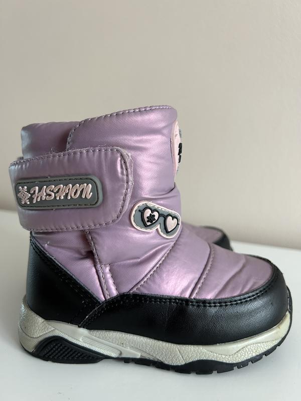 Зимние сапожки для девочки. Теплые, удобные, не промокают. В середине овчина, ножка не потеет. Защищенный носок, подошва не прячутся. Защелка на липучке, регулируется на ножке