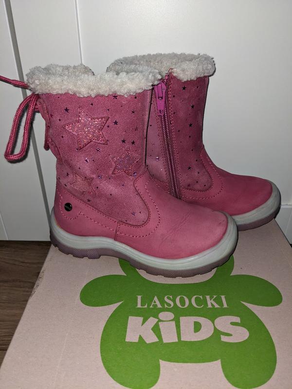 Кожаные теплые сапоги польской фирмы Lasocki. После моей крохи, обували всего 1 зиму, за лето ножка выросла. Размер 26, стелька 16,5 см. Отправлю НП, Укр-почтой и Meest Express.