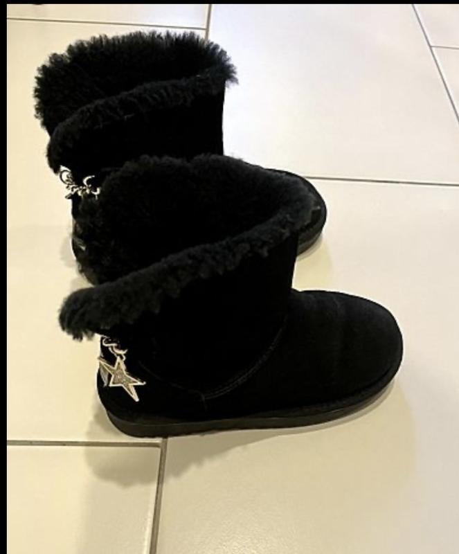 Подробное описание: Угги р.31-32 шикарные полностью натуральные Шикарные угги, в реальности красивее, например, на фото не такая красивая фурнитура как на самом деле, цвета золота, камешки блестят, угги полностью натуральные , покупали на ножку р.31 Стельку померять не возможно Ориентир по подошве если подошва 21см минимум отнять 1см , примерно стелька около 20см Покупать на ножку 19-19,5см Но лучше ориентируйтесь по подошве своих угг Угги в отличнейшем состоянии так как обули совсем мало( ещё две пары обуви на пересменку было) При необходимости покажу видео! Обмена, возврата, торга нет!!!!!