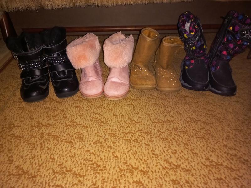 Обувь в красивом состоянии, от малейшего размера до 34р, цены и замеры уточняйте синие с пучком 19см 150 грнбрали розовые 18см 180грн серебряные с ушками 20 5см 200грн ржи угги 18см 200грн черные с цветными сердечками 20см 250 грн черные 19 см 150грн розовые дутики с снеж 19,5см 100грнбрали фиолетовые дутики 21,5см 200грн розовые дутики 15см 200грн резиновые красные 14см 200грн
