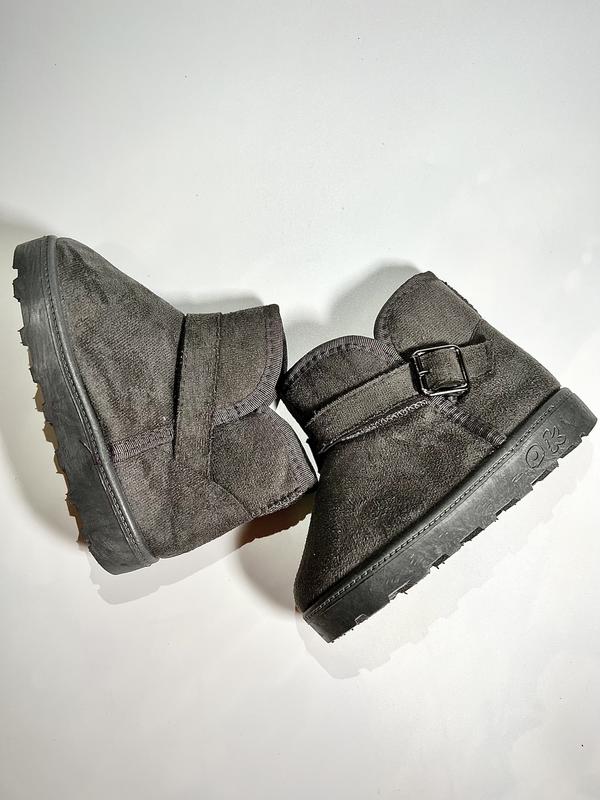 Детские зимние сапоги/сапожки серого цвета с мехом внутри Размер 26 Длина стельки 17 см Толщина подошвы 2 см Высота по пятке: 11.5 см