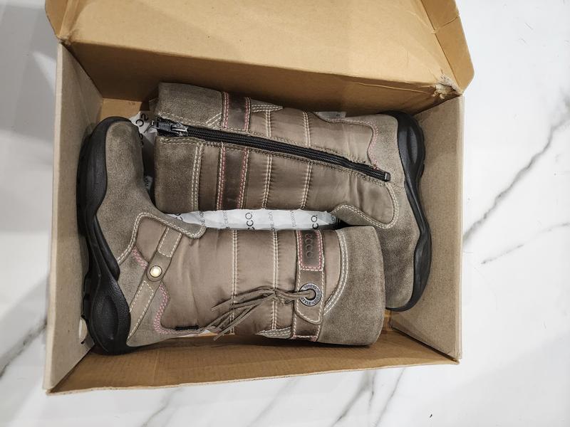 оригинальные сапожки Ecco. Состояние отличное, не затертые, по подушке видно что в носке минимально. Натуральный замш, система gore-tex, фурнитура отлично, фирменные логотипы на обуви, родная коробка, не промокают с специальным вкладышем (6 фото). По запросу вышлю дополнительно фото или видео обуви.