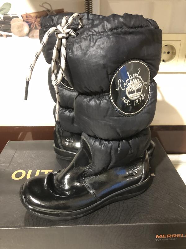 Чорні чобітки. Дуже зручно одягати, без замків. Дитина справиться сама. Утеплені всередині Довжина устілки 18,5 см. Тімберланд. Куплені у фірмовому магазині