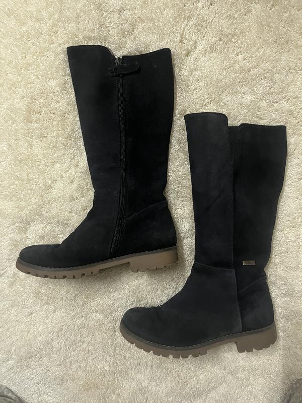 Сапоги в отличном состоянии. Натуральная мех замша, внутри утеплены. Подошва тракторная, полиуретан. Качество отменное. Размер 33, стелька 21,5 см. Цвет темно-синий. В распродаже товар отправляю после оплаты «на карту продавцу».