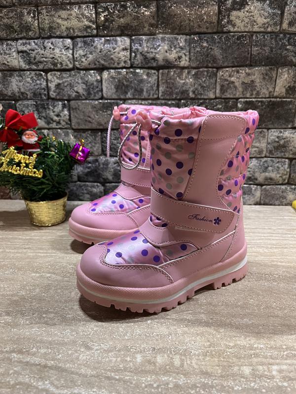 Невероятно теплые, удобные и стильные дутики для девочки. Очень красиво смотрятся на ножке. Верх выполнен из качественной экокожи и плащевки, водонепроницаемый термо материал. Внутренняя часть искусственный овчинная набивка. Подошва из резины - эластичная и не скользкая. Застегиваются змейкой сбоку с внутренней стороны. Есть липучка для фиксации ножки. Боковая часть пришита к стенкам дутиков, что защищает ножку вашего малыша от нежелательного попадания снега во внутрь ботинка. Носочек и пяточка защищены! Подошва толстая и прочная не скользит. Детские ботинки прочные и хорошо носятся.