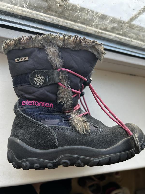 Термоботинки/ сапожки зимние детские Elefanten. Оригинал. Состояние показала на фото. Носились мало, в перемешку с другой обувью. Липучки крепкие, держат очень хорошо. Змейка рабочая . Внутри шерстяные полностью; на бирке все указано. Стелька- 15,5- 16 см. Смотрите мои другие объявления- есть много другой обуви и прочих вещей. Возврат товара не предусмотрен.