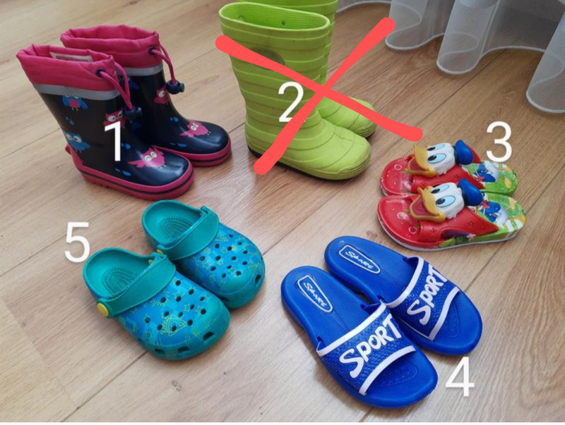 1. Сапоги резиновые, внутри на байке. Размер 22-23. Цена 200 грн. 3. Шлепки уточки Дисней, НОВЫЕ, размер 26. Цена 100 грн 4. Шлепки синие Спорт, НОВЫЕ, размер 28. Цена 100 грн. 5. Шлепки кроксы зелёные, размер 25. Цена 100 грн. 6. Шлепки кроксы салатовы , размер 22-23. Цена 100 грн Дополнительные фото и замеры могу выслать. Вся обувь в идеальном состоянии!!!
