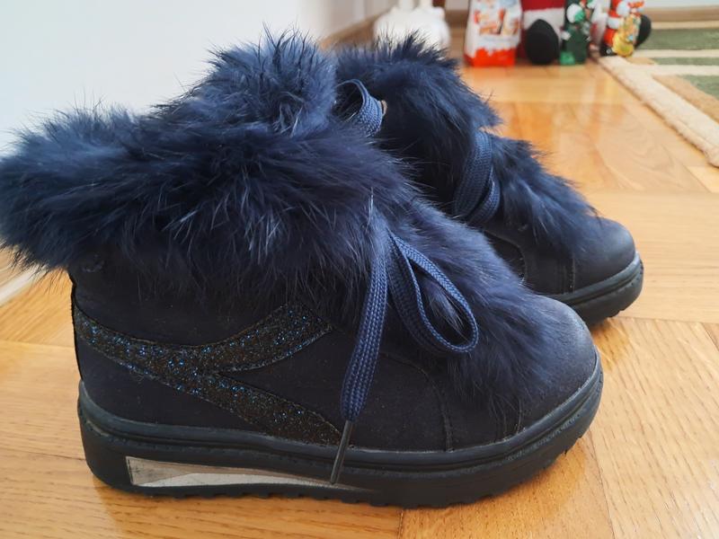 сапожки зимние, синего цвета с красивым мехом для украшения. Размер 30, длина стельки 17.5 см. легкие и очень удобные.
