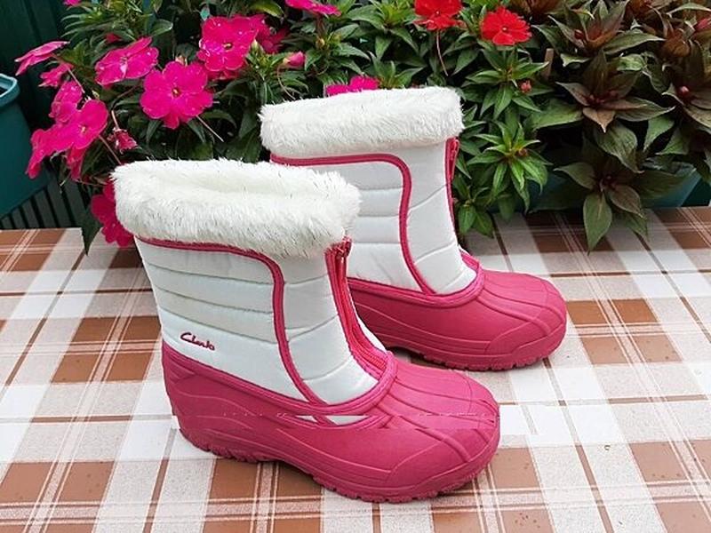 Clarks ОРИГИНАЛ зимние ОЧЕНЬ ТЕПЛЫЕ сапоги для девочек Внутри очень толстая искусственная шерсть Стелька меховая Верх водоотталкивающая текстиль, низ прорезиненный Идут на холодную снежную погоду 12/30 по стельке. 20 см