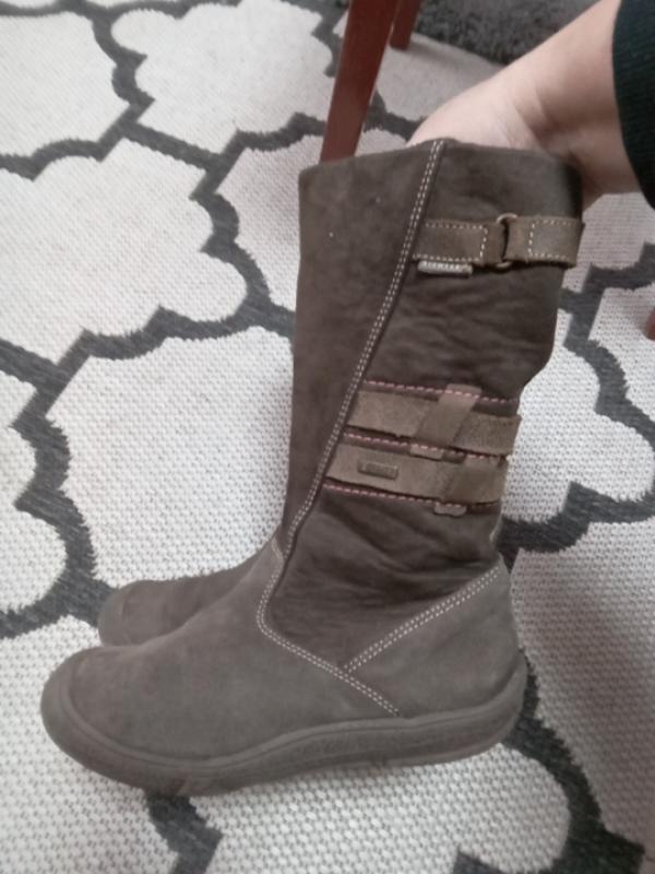 состояние отличное, без недостатков,полиуритановая подошва, укрепленные носки, чтобы не сбивались,кожа без недостатков,верхвиз текстиля под замш,нутые утепленные шерст.подкладом,цвет кофе с молоком, коричневый, стелька 21 см Вверху полуобъем14 см (28 см обьем) По косточки полуобъём 11 см (22 см обьем)