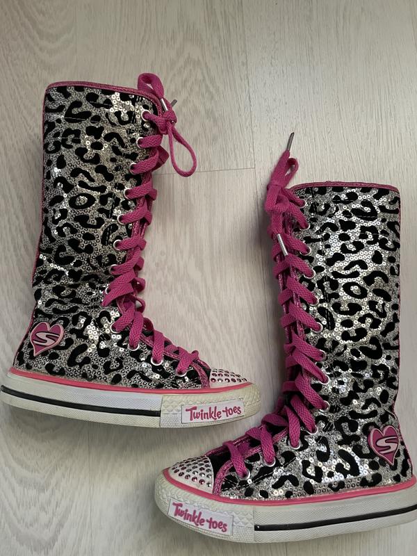 Чобітки з паєтками по устільці 16,5-17 см, на шнуровці та молніі , легкі та зручні. Стильні.