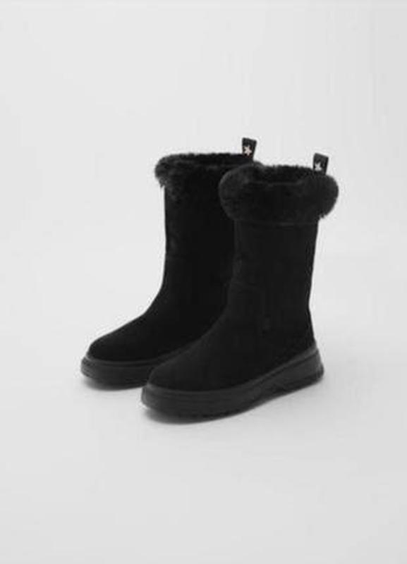 Зимові чоботи на дівчинку фірми Zara 35 розміру,довжина устілки 23 см.Стан відмінний.Чоботи дуже красиві і зручні,без змійки тому на худу чи середньої повноти ножку.Замша штучна,хутро теж штучне але виглядають дуже гарно.