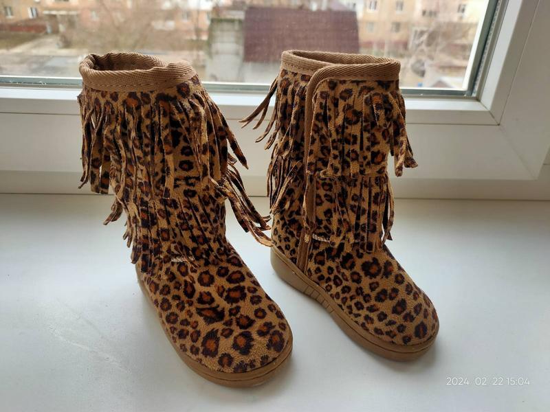 Тип взуття: Чоботи Чоботи леопард р-р 4 (20 європейський), довжина вн. устилки 11,5 см. На ліпучці. Стан добрий, без дефектів.